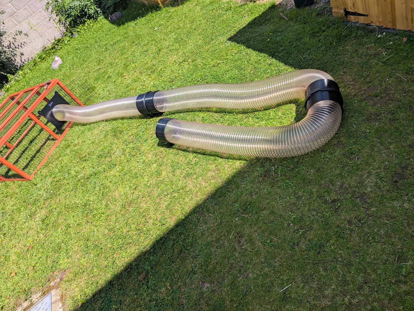 Instead, we can pick up 6 meters of PU dust extraction hose for about the same money (when you include shipping and customs fees). Rabbits are basically just semi-sentient abbrasive materials, so if the PU piping can handle wood chippings then it should be able to handle rabbits too. The downside is that said ducting doesn't come with any way to attach it to the rest of the rabbit's accoutrements...