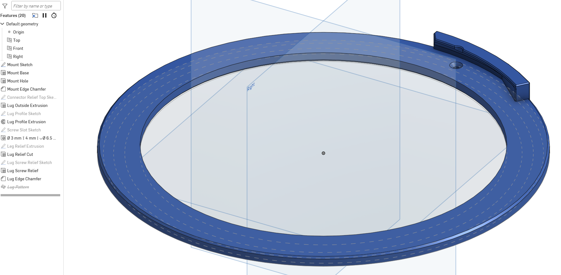 The key to simplifying the configurability of the locking lugs was switching away from eagerly repeating features in the sketches and instead only repeating features in their final form.