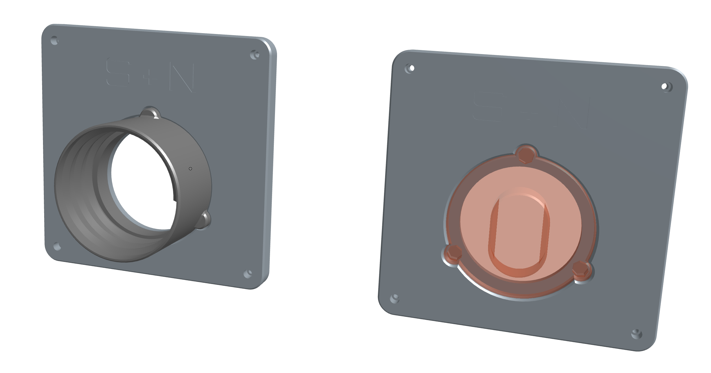 The problem with this idea, for anyone familiar with 3D printing, is that the locking lug design meant that printing them back-to-back would result in overhangs. Instead, I opted to design the coupling connector a set of mirrored components which would be screwed together back-to-back, addressing this concern.